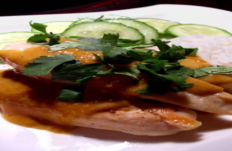 8. Dish chicken and drizzle sauce over the top. Garnish with chopped cilantro and serve.